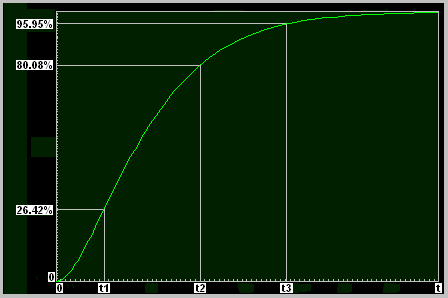 En un sistema de segundo orden hay tres tiempos importantes, tiempo t1 que es cuando la señal de salida alcanza el 26.42% del régimen estacionario, tiempo t2 que es cuando la señal de salida alcanza el 80.08% del régimen estacionario y el tiempo t3 que es cuando la señal alcanza el 95.95% del régimen estacionario.